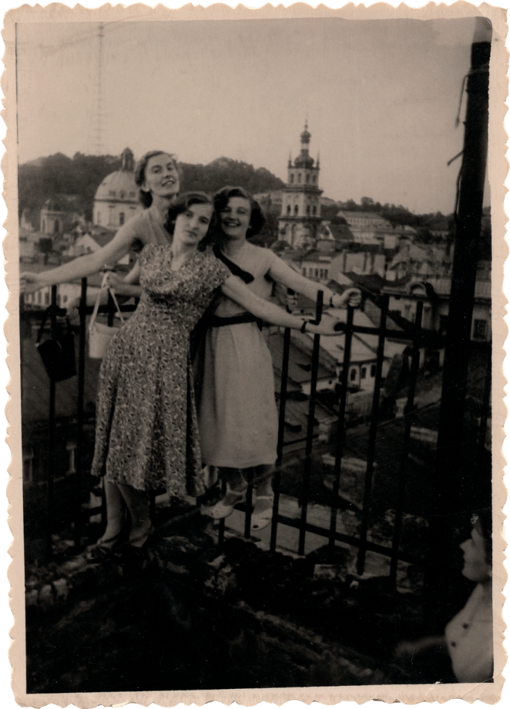 Мирослава Сахаревич (в центрі) з подругами, Львів, кінець 1950-х років