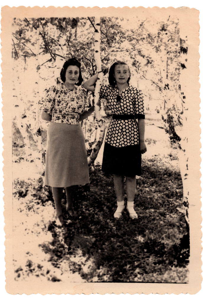 Марія Гулей з донькою Мартою у Томській області, початок 1950-их років