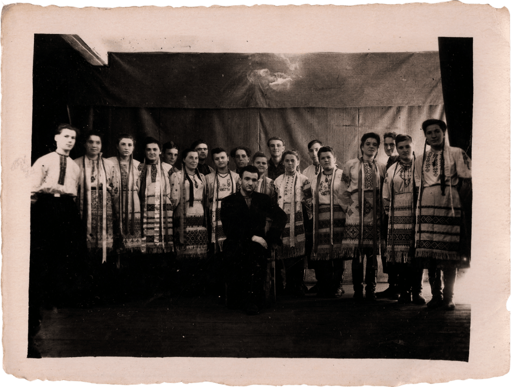 Хор у складі спецпоселенців та спецпоселенок під керівництвом Йосифа Шандри (у центрі), місто Прокоп’євськ у Кемеровській області, 1950-ті роки
