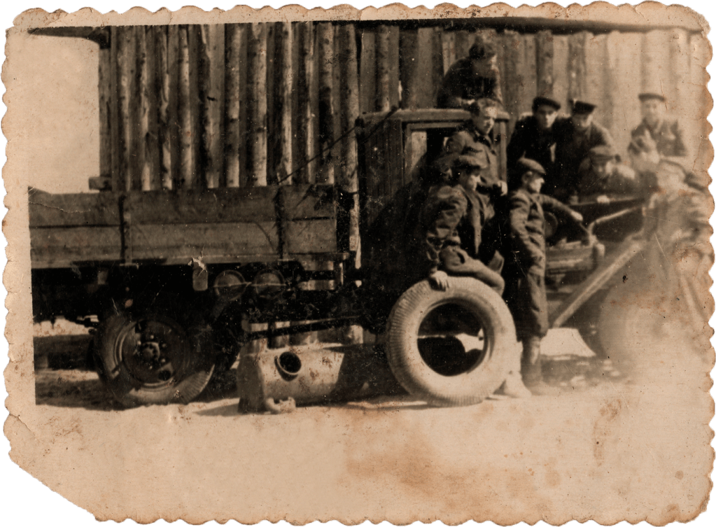 Спецпоселенці біля вантажівки, селище Торба в Томській області, 1950-ті роки