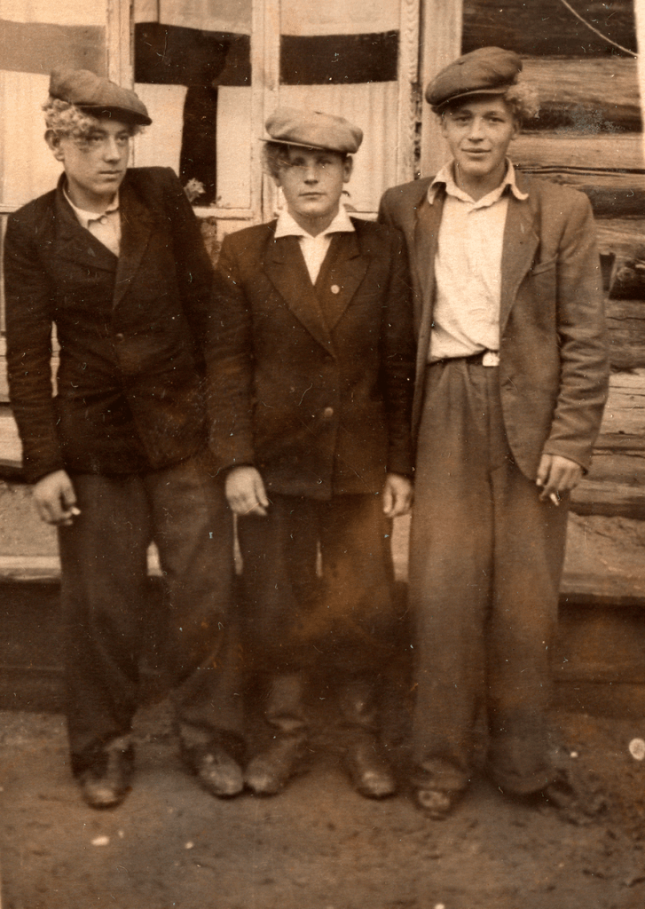 Микола Цвик (перший справа) з товаришами, місто Томськ, початок 1950-х років