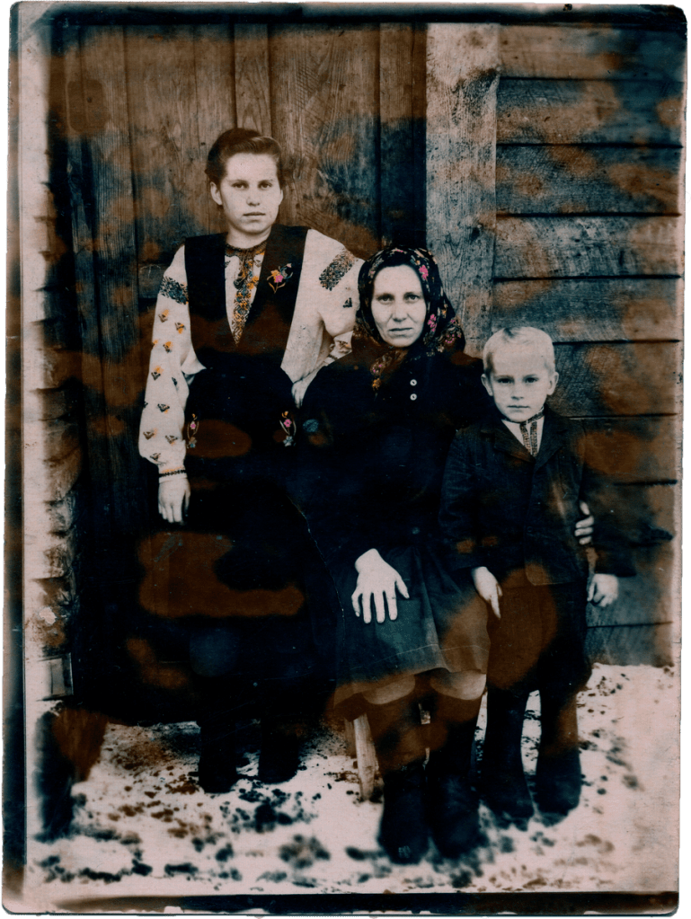 My grandfather, my mother’s father, Popovych Ivan Mykhailovych, was in the Ukrainian Insurgent Army and died in battle. For that, my grandmother with her three children were deported. My grandmother is Popovych Maria Ivanivna. The three children are: the eldest daughter Olha, the middle daughter is my mother, Maria, and the youngest brother is Ivanko. My mom (she was 8 years old) jumped out of the cart. To be more specific, they arranged some distraction, and she jumped out of the cart and ran away. That’s what I know.